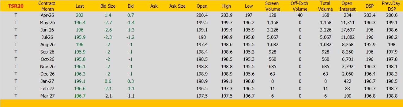 ราคายางTSR20 ตลาดยางSICOM ราคาส่งมอบเดือน เม.ย.ปิดที่202 เซนต์สหรัฐ  ราคาเพิ่มขึ้น 1.4 เซนต์สหรัฐหรือ คิดเป็นเปอร์เซนต์ +0.70% %