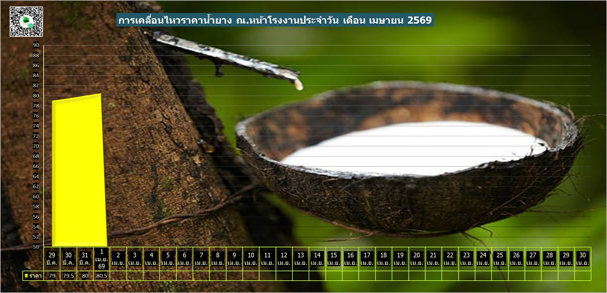 สรุปราคาน้ำยางโรงงานและลานท้องถิ่นทั่วไปประจำวัน พุธ ที่ 1  เมษายน  2569