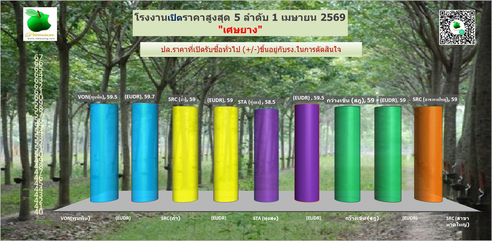 สรุปราคายางแผ่นรม/ดิบ เศษยาง เครฟ โรงงานทั่วไปประจำวัน พุธ ที่ 1  เมษายน  2569